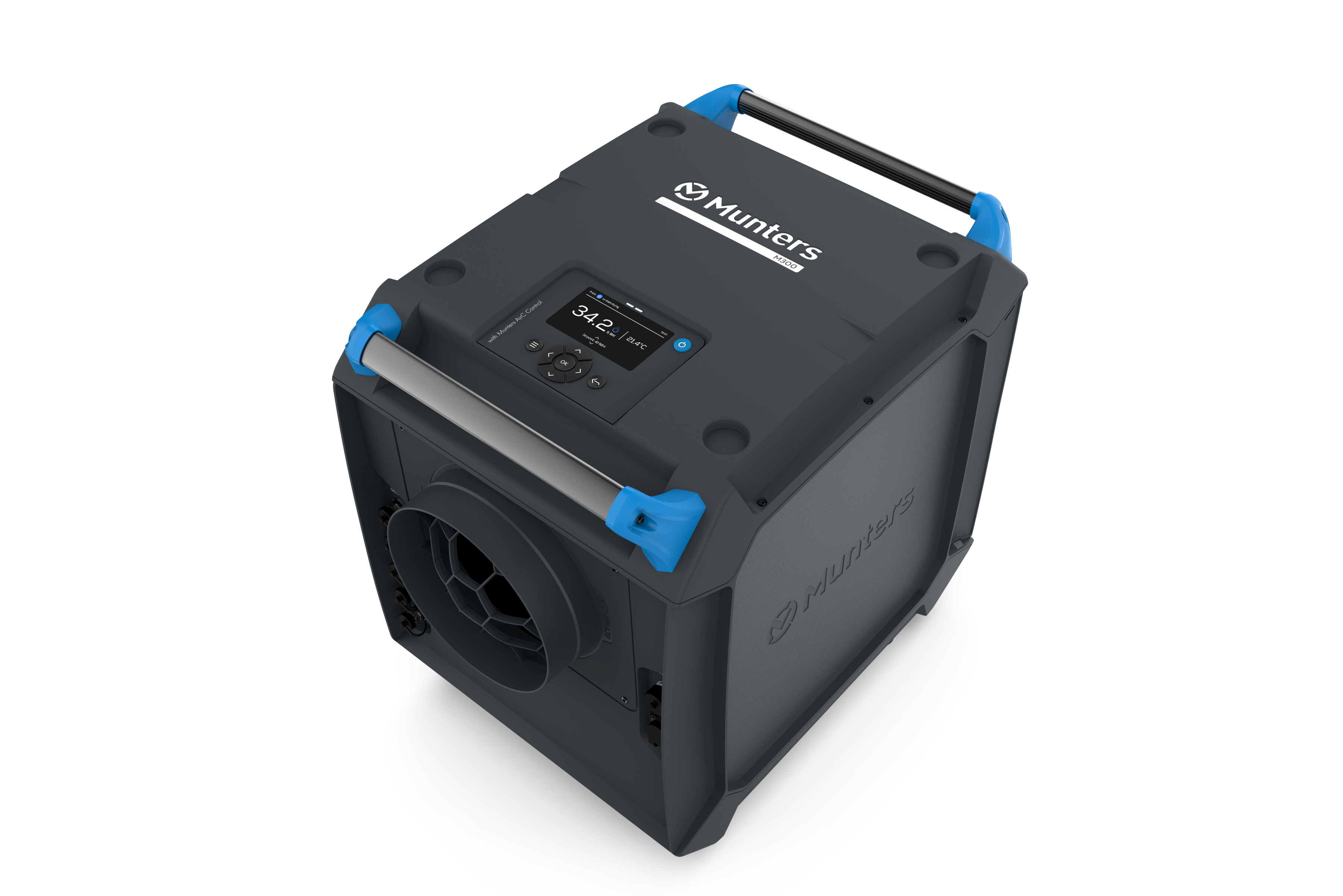 Det er nemt at styre, administrere og finjustere din M300. Med forudindstillede værdier er installationen en simpel plug-and-play-proces. For dem med mere specifikke behov tilbyder AirC 200-styringssystemet fuld fleksibilitet til at tilpasse indstillinger såsom beregnet dugpunkt, tilføjelse af eksterne sensorer, alarmsignaler – og meget mere.