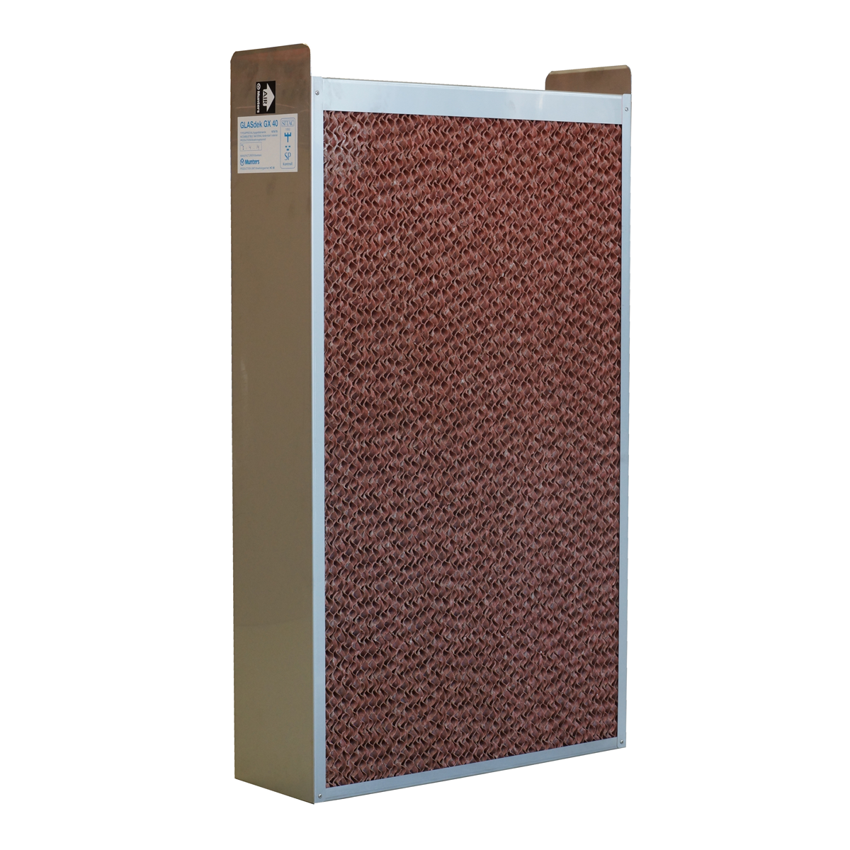 A ceramic-coated evaporative media in a corrosion-resistant cassette, the Munters GLASdek GX40 optimizes cooling and humidification in spaces that require energy-efficient indoor climate control, like data centers and manufacturing plants. Used in Munters FA6™ evaporative humidifiers and coolers.