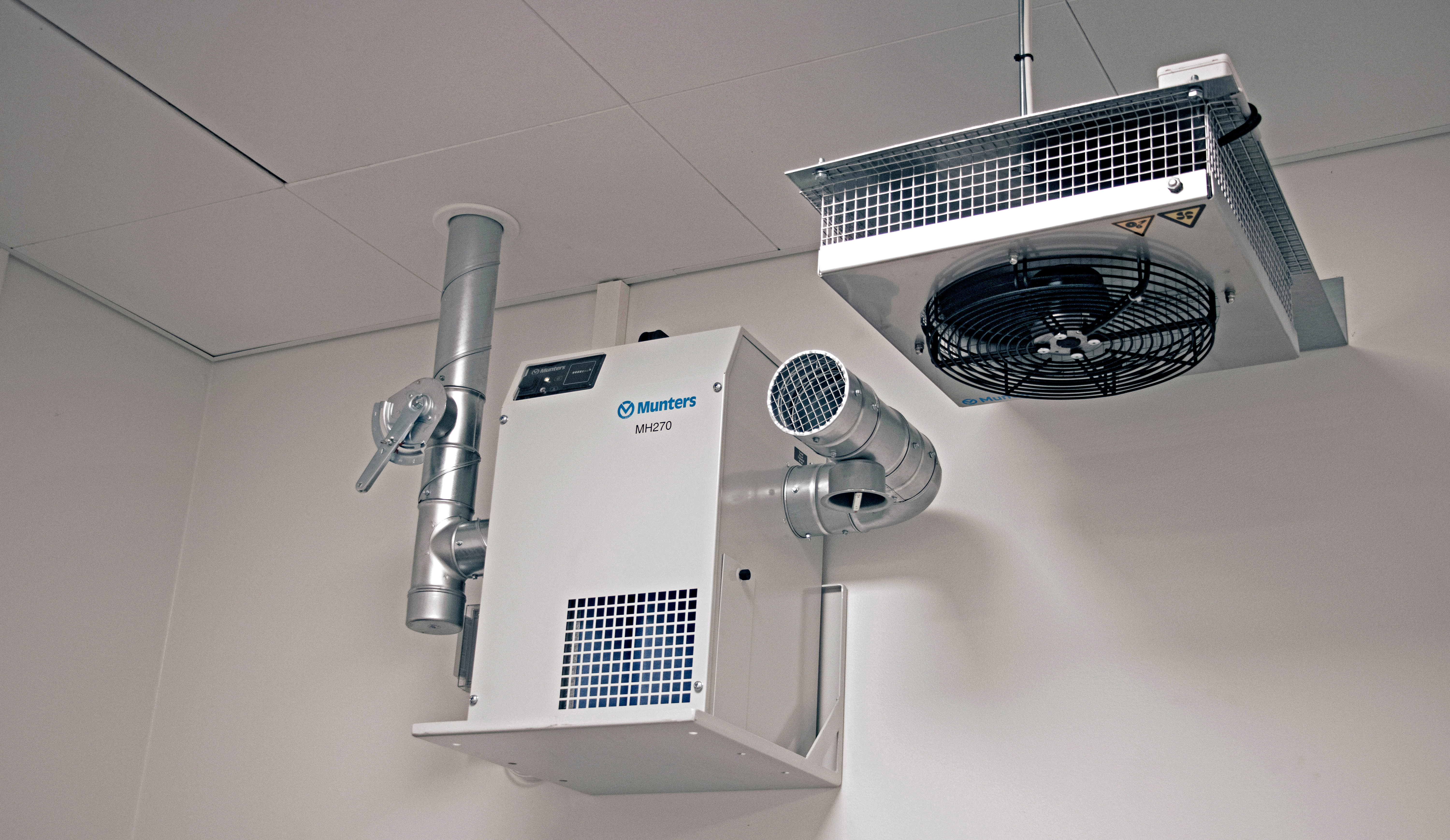 - Munters dehumidifier with controls and circulation fans with controls