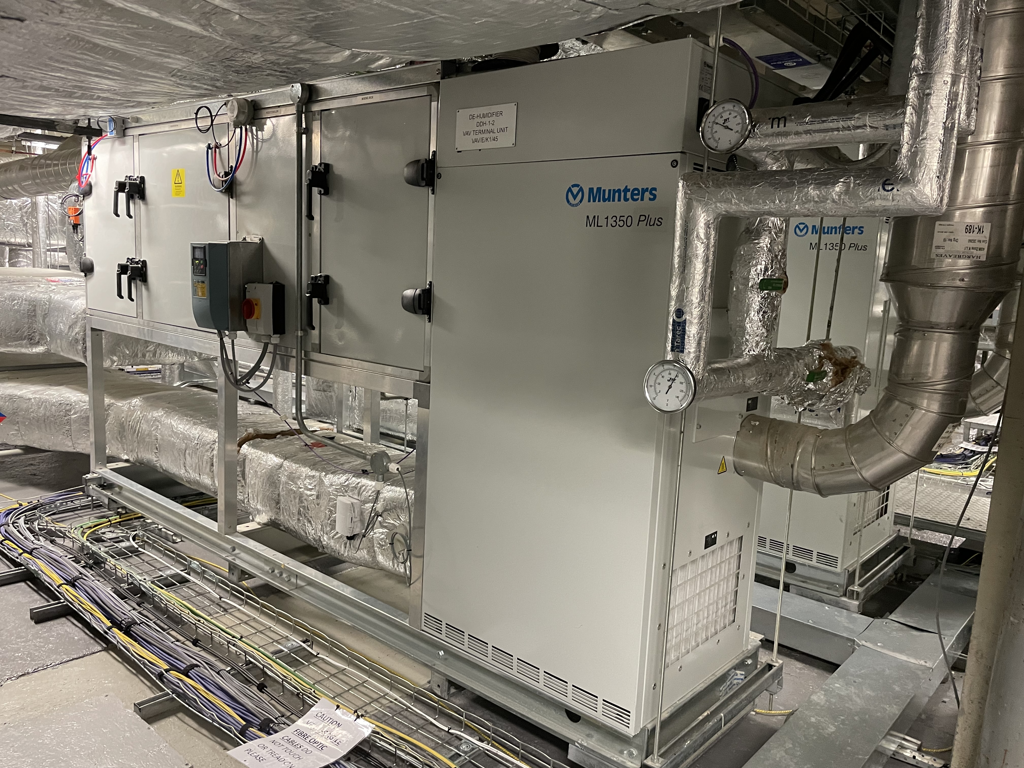 Munters has supplied several ML plus temperature and humidity control systems to maintain a temperature of 20°C at 20% relative humidity. These systems incorporate desiccant dehumidifiers, cooling coils, booster fans, and filtration and are linked to a BMS (Building Management System). Unusually, the plant room where the dehumidifiers are installed is situated above the laboratories on a floating plant room floor. This is critical for preventing any vibration in the laboratories below. Munters worked closely with MRC LMB and building contractors to meet these needs. They are also modular in design in order to so that they could be broken down and reassembled in their install location. Dr Russo continues “Using the microscope would be extremely problematic if there was no dehumidification. These specialist microscopes cost millions of pounds to purchase (from funding), and thousands of pounds per day to operate. Other laboratories look to the MRC LMB to learn not only how we operate our microscope, but also how to build our rooms and the facility. The Munters dehumidifiers are a big part of that."