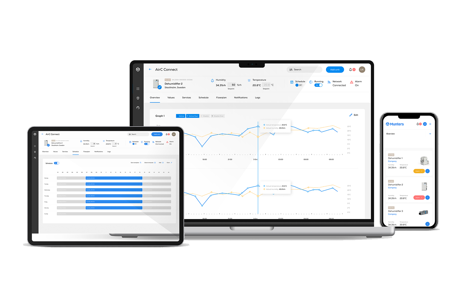 Customized configuration: choose your MX3 dehumidifier based on your needs and integrate pre/post-treatment options like humidifiers, heating/cooling, air filtration and more.