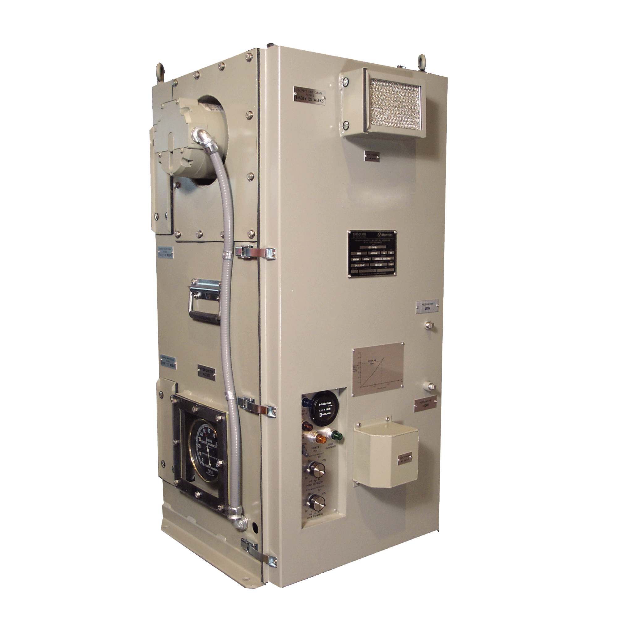 Reducing humidity levels is a cost-effective way of ensuring the functionality and availability of military equipment. Humidity control prevents corrosion on metal surfaces and inhibits the growth of mold and fungus on items with organic material. It also slows or prevents the degradation of chemical compounds in ammunition, optimizing its shelf life.