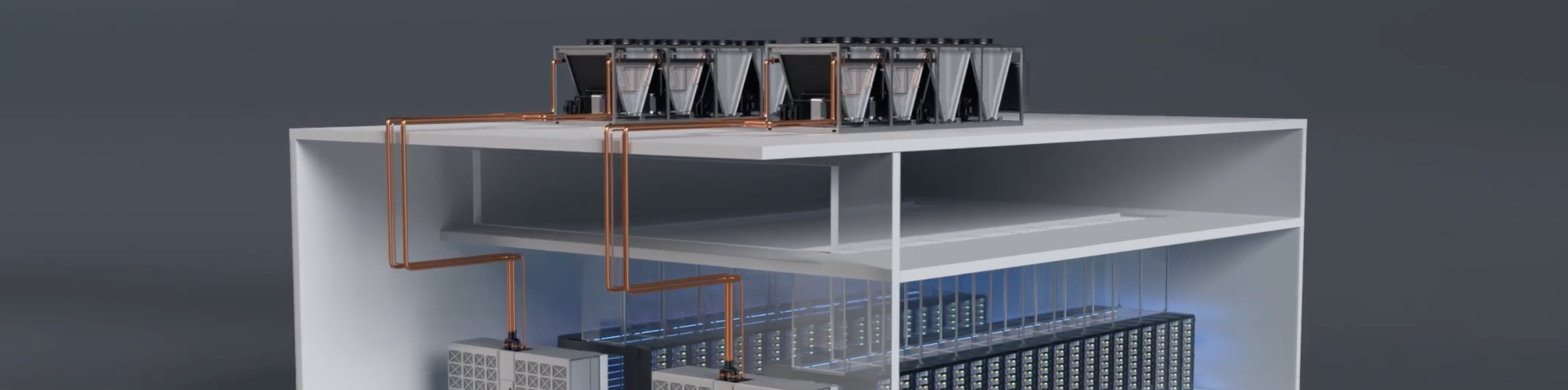 En temperaturas frías, SyCool Split proporciona refrigeración gratuita al 100%. A medida que la temperatura aumenta, activa los compresores para mantener su eficiencia durante todo el año. Esta adaptabilidad permite futuras actualizaciones, como la integración de componentes con refrigeración líquida. Reconocido por su innovación, SyCool Split™ recibió el premio Top Tier Product 2021 de Mission Critical Magazine en la categoría de Soluciones de Gestión Térmica.