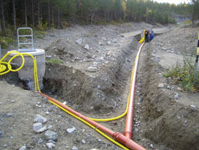 En una serie de pozos de medidores, 17 st, hay instalaciones para la medición de fugas por computadora. Un clima húmedo en los pozos de medición ha provocado que el equipo no sea confiable, causando problemas para el personal de supervisión. Un Munters ML690 con control de tiristor de calefacción y sensor de humedad (colocado en el canal de aire seco) instalado. El deshumidificador está dispuesto en una carcasa en el centro del sistema de drenaje. Un conducto con una longitud total de aproximadamente 600 m en el suelo se adentra en los pozos del suelo para distribuir el aire seco desde el deshumidificador 17 hasta los pozos del medidor. De esta manera, ahora han perdido sus problemas pasados y obtienen una técnica de medición confiable con un mantenimiento reducido.